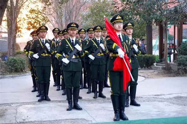 伴随着雄浑壮阔的《义勇军进行曲》,飒爽勃发的校国旗班队员迈着铿锵有力的步伐护卫国旗入场,随着五星红旗的冉冉升起,全体师生面向国旗肃穆站立,行注目礼,向伟大的祖国致以最崇高的敬意。