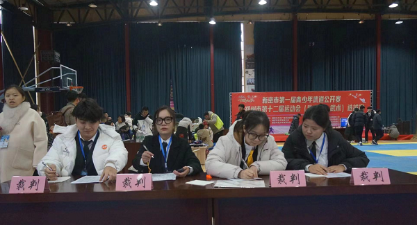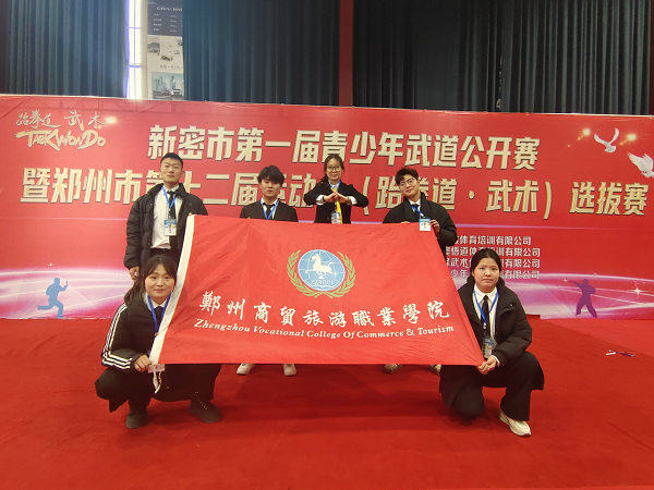 为深入学习贯彻党的二十大精神,以实际行动践行《职业教育提质培优行动计划(2020-2023)》和《国家职业教育改革实施方案》文件精神。2024年1月6号,应新密市文广旅体局邀请,我校体育教学部教师王晴率领燕雨涵、张德臣、崔健豪、李欣茹和梁瑞鑫一行六人,参加“青少年武道公开赛”跆拳道及武术项目比赛现场执裁工作。