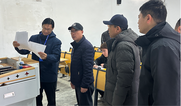 2023-2024学年第一学期期末考试工作本周拉开帷幕。1月9日上午,副校长康勇、教务处副处长马小伟等深入新密校区各考场对期末考试工作进行巡视检查,机电工程学院院长王奎英、建筑工程学院院长丁宪良、学生处负责人范春兵陪同巡查。