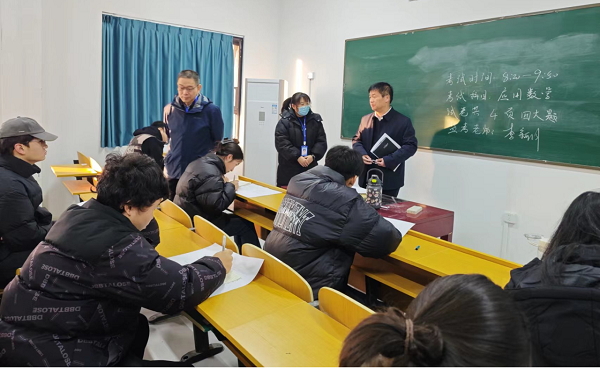 2024年1月8日期末考试正式开始,财经商贸学院全体教师参与监考。校长郭国侠、副校长冯鑫永、校长助理吴刚、教务处长黄智科、财经商贸学院院长王国付和学生处负责人施丽芬分别对财经商贸学院期末考试工作进行了全面巡查。