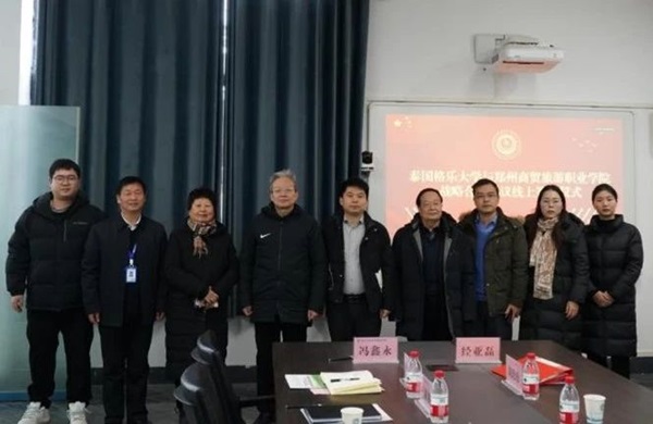 12月27日上午,我校与泰国格乐大学合作签约仪式在中原校区一楼会议室举行。泰国格乐大学国际学院副院长周瑞敏、国际交流处处长经亚磊、河南事务中心主任杨书迪、事务中心教务主任朱彦华等参加仪式,副校长冯鑫永、党委副书记郭林山、副校长王素湘、校企合作办公室主任李万银出席,仪式由教务处处长黄智科主持。