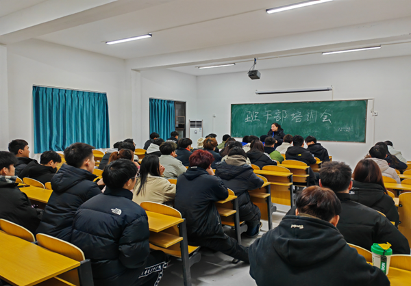 学生干部是学校、教师与同学之间的桥梁与纽带,在学生中起带头、凝聚和服务作用。为建设一支业务精湛,作风优良的学生干部队伍,提高学生干部的整体素质,更好地助力学生干部成长与发展, 12月21日晚,学生处开展了主题为“学生干部培训”的活动。本次活动由学生会主席王俊峰组织,各班级班长参加,学生处负责人施丽芬主持。