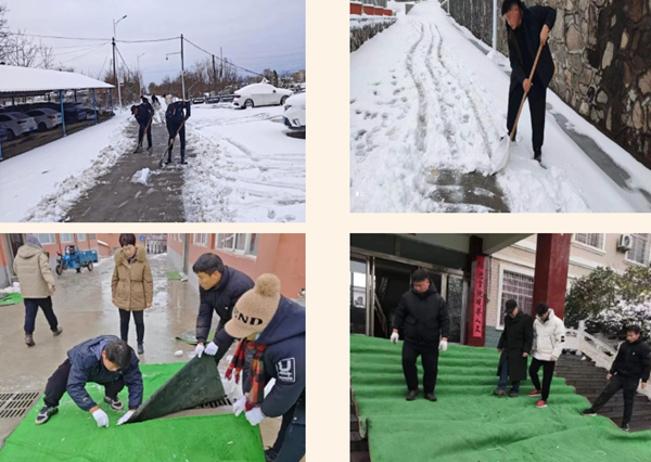 “雪情即是命令”,后勤处在降雪开始后迅速启动冰雪天气应急预案,积极协调筹措扫雪工具,调集后勤、物业人员及辅导员、学生志愿者马上投入扫雪、除冰工作。刘庆武副处长针对暴雪天气提前安排部署,压实各部门职责,多角度、多举措开展应对暴雪极端天气校园安全隐患排查行动,为师生安全保驾护航。