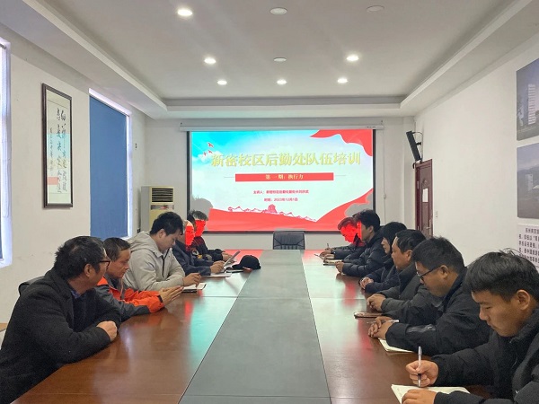 为加强后勤队伍建设,推进后勤队伍专业化、规范化,改进服务方法,提升服务水平,办师生满意的后勤服务,新密校区后勤处结合实际工作情况,于12月1日上午举办了第一期队伍培训会议。后勤处全体成员参加会议。