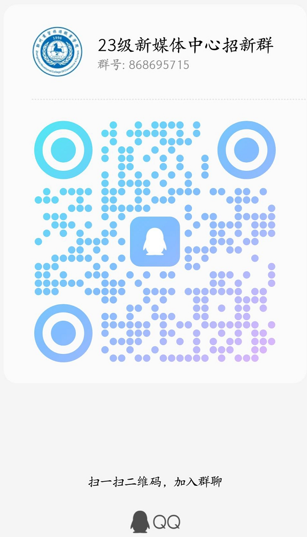 请23级小萌新们扫描下方二维码进入新媒体中心QQ招新群,等待进一步的面试通知哦。
