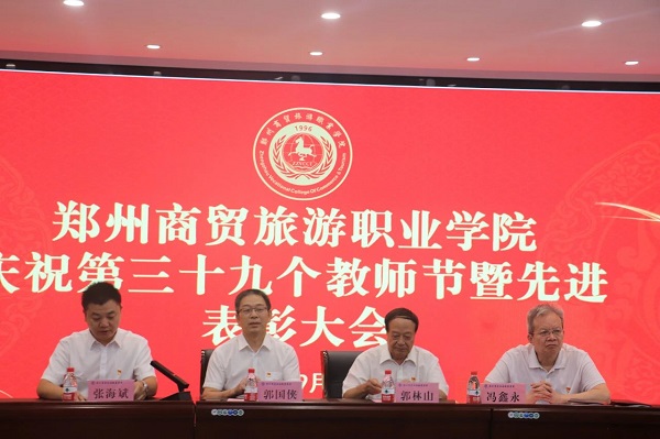 为庆祝第39个教师节,树立模范典型,弘扬师德风范,9月8日下午,郑州商贸旅游职业学院庆祝第三十九个教师节暨先进表彰大会在中原校区学术报告厅隆重举行。校长郭国侠、党委副书记张海斌、副校长冯鑫永出席会议,全体受表彰先进个人、教师代表和学生代表齐聚一堂,欢度节日。表彰大会由校党委副书记张海斌主持。