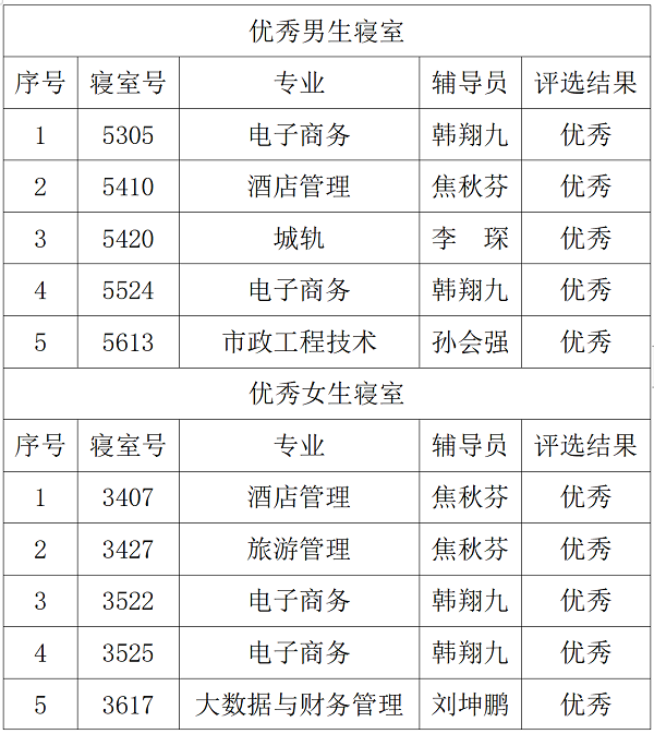 在此次活动中取得优秀文明寝室11个、优秀班级4个,分别是以下: