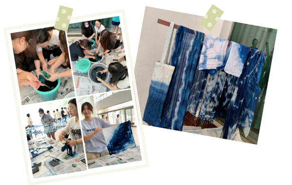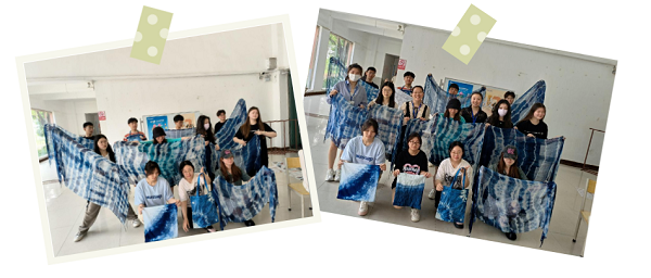 师生们充分发挥想象力和创造力,动手创作自己的扎染作品,大家兴致高涨,沉浸其中,用心体会扎染工艺,通过扎制图案、染色、拆线、洗涤、晾晒等各道工序,真真切切地感受了这项民间技艺的魅力。