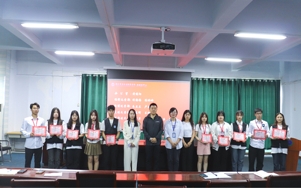 会上,通报表彰了新媒体中心2022—2023学年度新媒体中心工作先进个人,党委副书记张海斌为获奖学生颁奖。