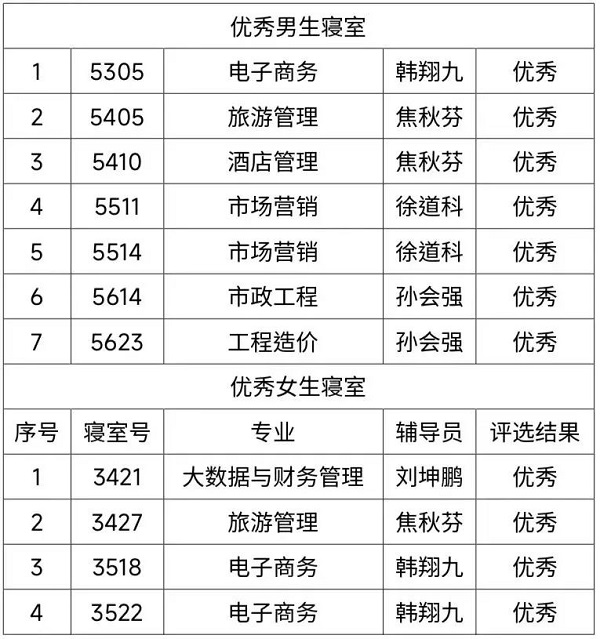 在此次活动中取得优秀文明寝室13个、优秀班级4个,分别是以下: