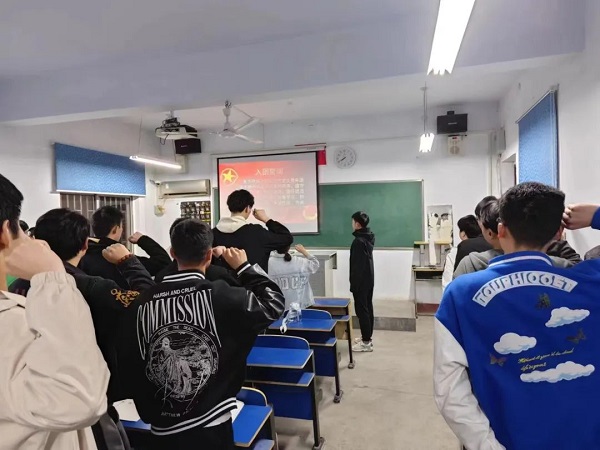首先,举行“重温入团誓词”仪式。通过强化教育“仪式感”,让青年团员经受“沉浸式”精神洗礼,强化团员身份意识,增强使命感、责任感。