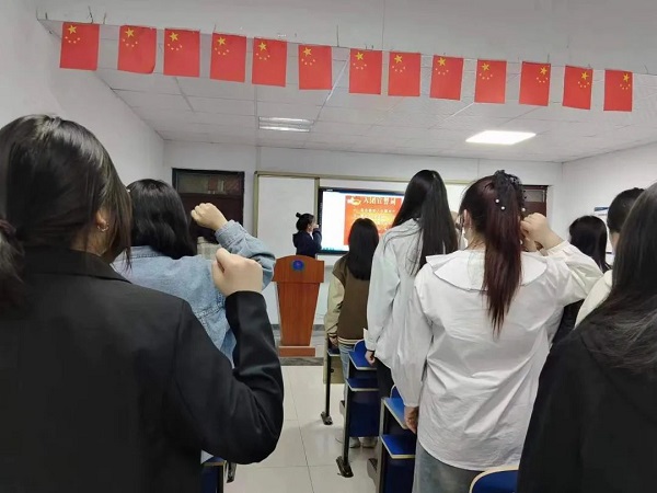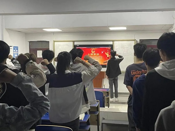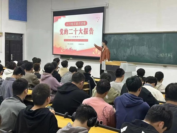 宣誓结束后,各支部书记根据团委统一发放的PPT及文稿,带领我校学子共同学习二十大精神,深刻领会党的二十大的主题,深刻领会过去5年的工作和新时代10年的伟大变革,深刻领会开辟马克思主义中国化时代化新境界,深刻领会中国式现代化的中国特色和本质要求,推动党的二十大精神进课堂、进头脑。