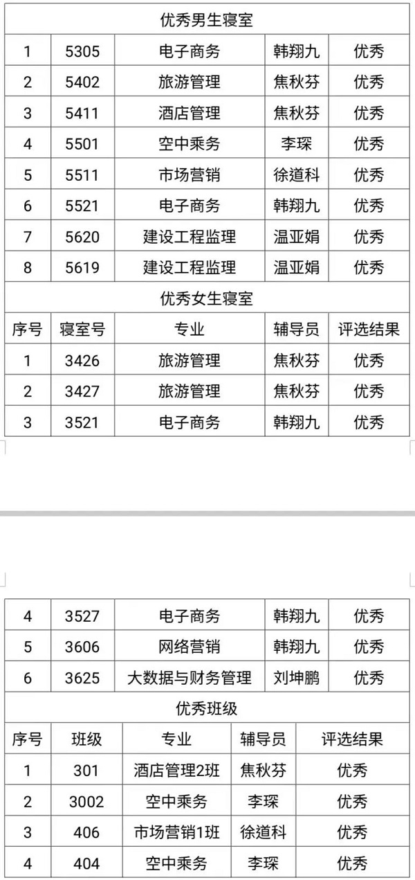 在此次活动中取得优秀文明寝室14个、优秀班级4个,分别是以下:
