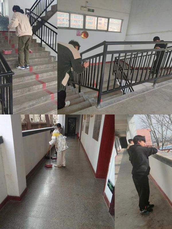 此次劳动实践的主要区域为整个后教学楼环境清理,包括中间及两侧楼梯、扶手、楼道地面以及教学楼后空地落叶与枯枝,尽管清扫范围广、工作繁琐,但大家参与积极,使出浑身解数对卫生死角进行一一清理,干得如火如荼。