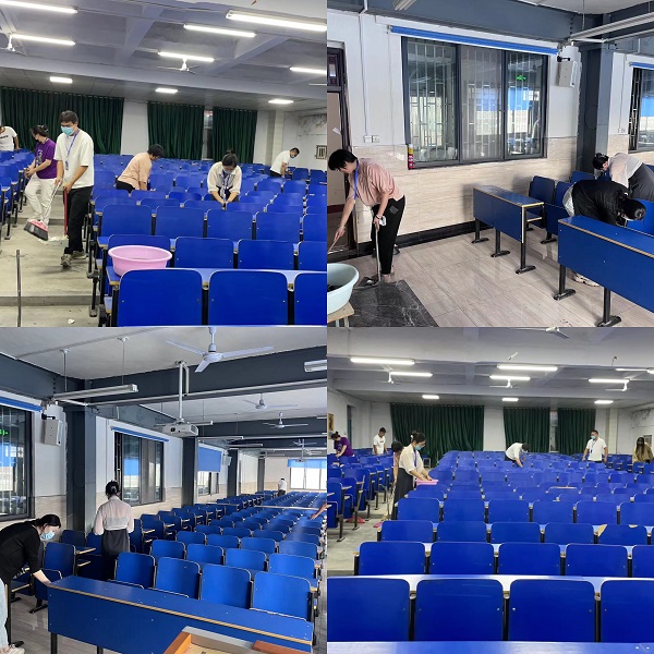 菁菁校园,大雅之堂,绿树红墙,春意常在,莘莘学子,勤奋好学,优良校风,靠你靠我。为了营造一个优美、舒适的学习和生活环境,以崭新的校容校貌迎接返校复学的学生,教务处副处长郭小汇组织教务处所有在校教师对教学场地进行了全面而细致的整理、清扫。