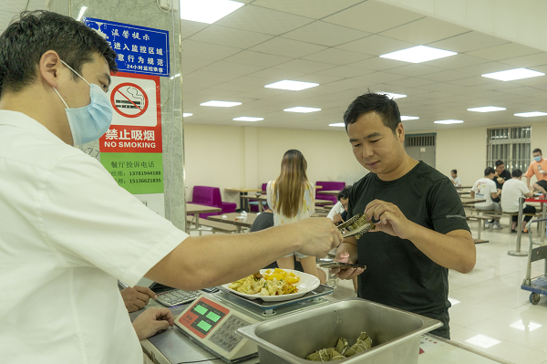 餐厅工作人员为考生分发粽子