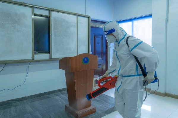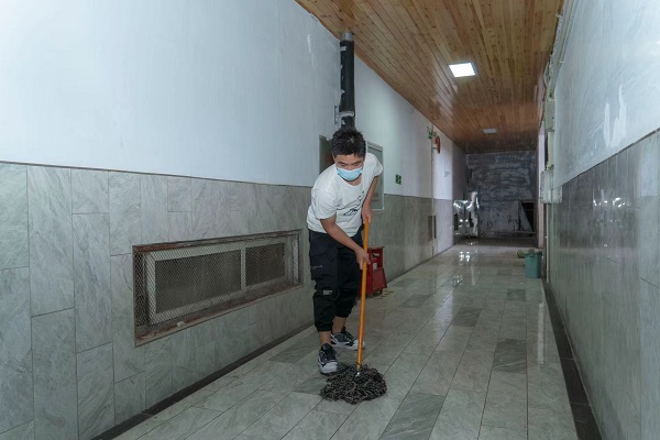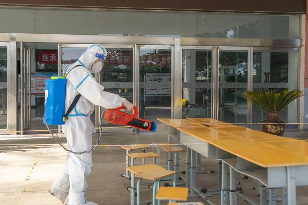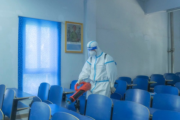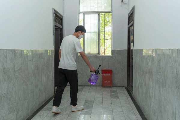 工作人员对考生宿舍、卫生间死角、楼道进行彻底打扫同时对考场进行提前消毒。