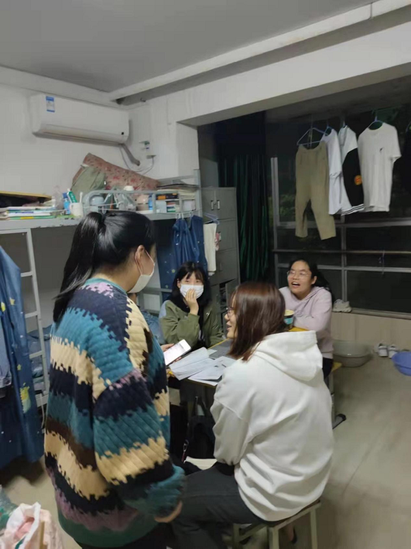 学生处全体教职工全部入住学校,随时应对突发紧急情况。辅导员每天深入学生公寓,了解学生实际需求和困难,悉心疏导学生情绪,叮嘱学生做好个人防护,切实解决疫情防控下学生住宿、用餐、线上学习的实际困难,指导学生进行宿舍开窗通风,掌握学生的思想动态,积极协调解决学生遇到的困难。给封闭管理的学生带来抗疫必胜的坚定信念和无限的温暖。