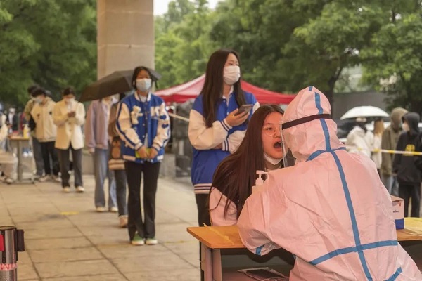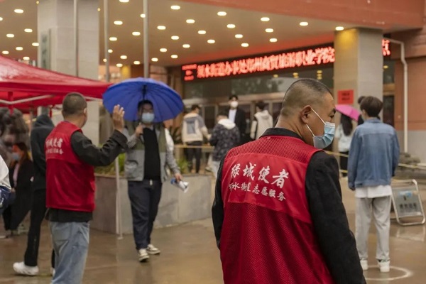 蒙蒙细雨也无法阻挡师生们疫情防控的心,大家毫不懈怠,遵守志愿者和工作人员指挥,有序进场,开展核酸采样工作。