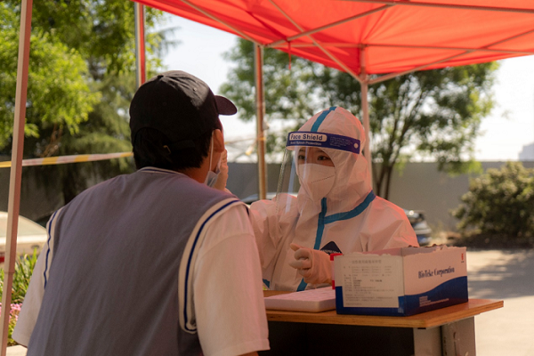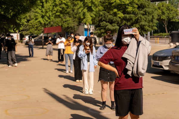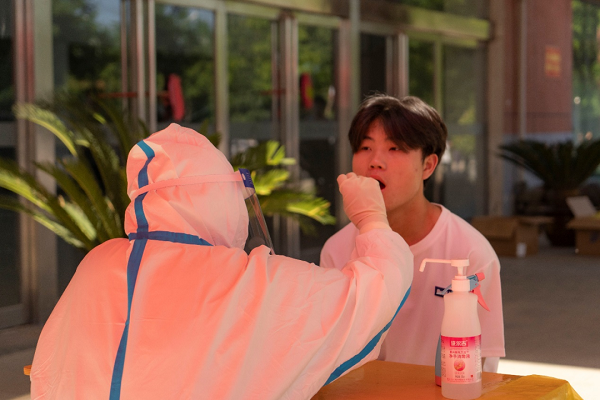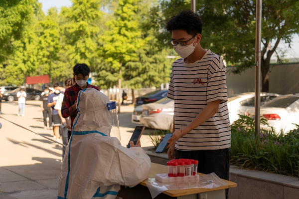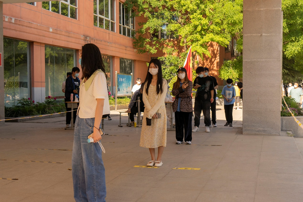 尽管烈日炎炎,同学们心中仍牢记疫情防控规定,遵守疫情防控政策,佩戴口罩,间隔两米,有序登记,安静等待核酸采样工作。