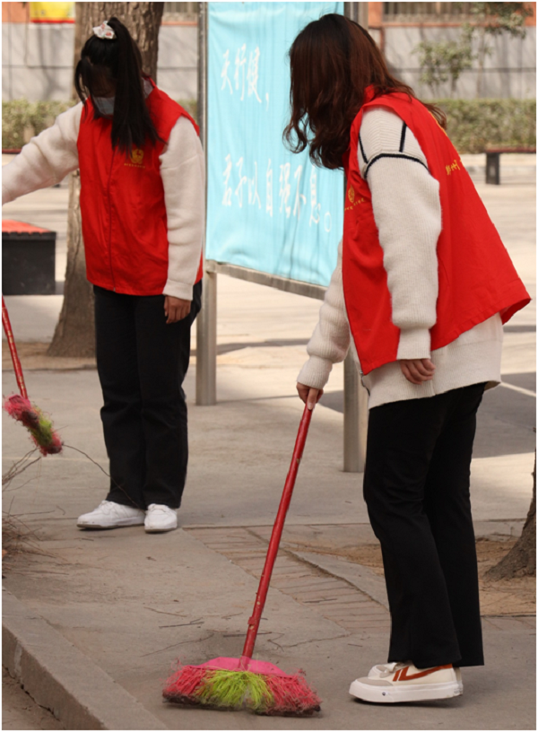 志愿者们分工明确,相互配合,清扫校园墙边的纸屑,捡拾路边的枯叶,清理绿化带中的废弃物和校园卫生死角。在大家的共同努力下,校园环境焕然一新。志愿者们用实际行动践行雷锋精神。
