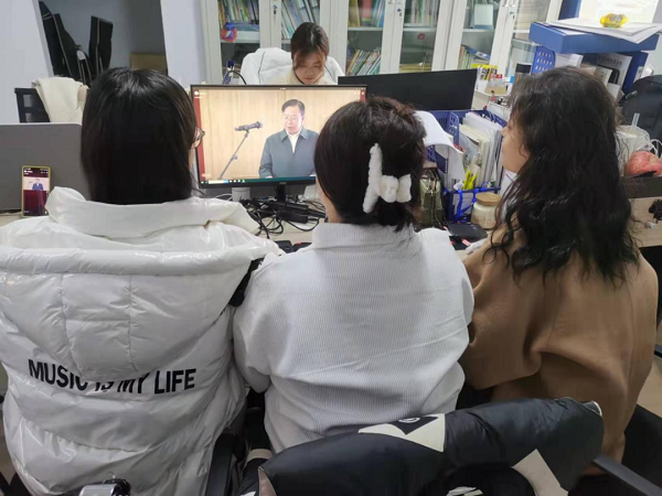 2月28日上午,按照省教育厅通知要求,我校积极准备、精心安排,以集中和分散两种方式,组织全校师生收看了以“讲好冬奥故事,砥砺奋进力量”为主题的全省2022年春季开学思政第一课暨大中小学思政课集体备课直播。