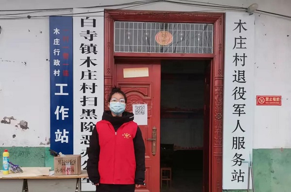 我是郑州商贸旅游职业学院21级信息工程系计算机应用技术二班张堃瑶,现在河南省周口市商水县白寺镇穆庄村当防疫志愿者。我每天在本村防疫站驻守对进出入人员进行查看双码(行程码,健康码)并对外来到访人员进行信息核查和记录,对其进行测量体温、消毒,有时会跟随领导人员进村进行房屋调查。带头大力宣传党和政府疫情防控政策精神和工作要求,带头宣传疫情防控工作应知应会知识,增强防护意识、理解防控措施,大力支持、积极配合、科学参与防控工作。