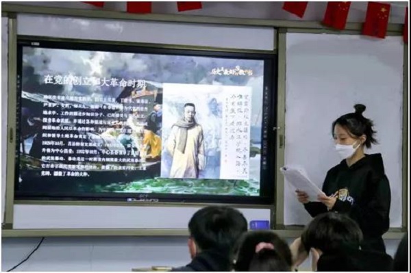 李晓琳以《历史是最好的教科书》为主题,为艺术传媒系的同学上了一节生动的党课。她从五个部分分别介绍了中国共产党带领人民从苦难走向辉煌的光辉历程,她指出,在新的历史时期,必须深入学习领会习近平新时代中国特色社会主义思想,从这一理论宝库中找立场、找观点、找方法、找动力,还要不断继承发扬红色传统,以史为镜、以史明志,知史爱党、知史爱国。