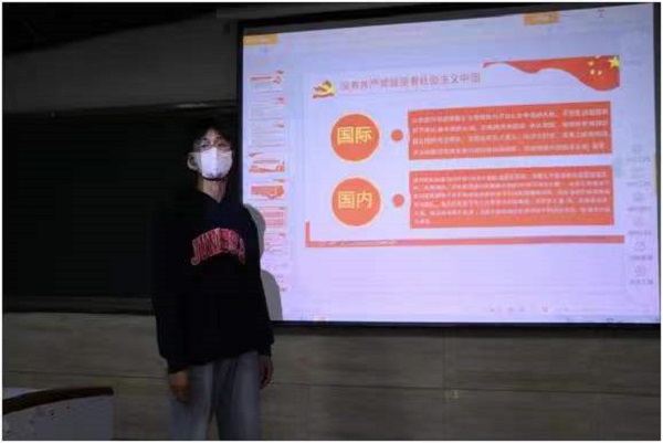 黄锦玉同学以《学党史 颂党恩 跟党走 》为主题为同学们展开精彩的宣讲,内容涵盖了中国共产党带领中华民族实现民族独立、民族解放、建设中国特色社会主义等方面, 黄锦玉指出,没有共产党就没有新中国,就没有我们幸福的今天。作为当代大学生,我们要坚持党的领导、坚持走中国特色社会主义道路、坚持唱响时代主旋律。