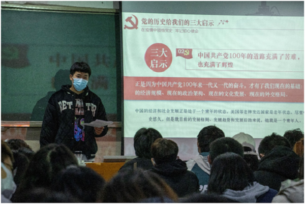 中国共产党从诞生至今,走过了100年的光辉历程。为进一步促进同学们了解党史,学习党史,12月3日,我校党史学习教育专题宣讲在4001教室开展,大学生党史宣讲团成员、信息工程系同学冀志鹏担任主讲,经济管理系电子商务专业全体同学参加。