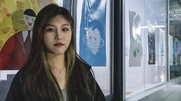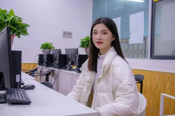 白色棉服外套与紧身牛仔裤相得益彰,简洁干练。一颦一蹙,给冬日的校园增添优雅与细腻。