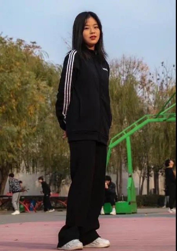黑色上衣搭配黑色运动裤,白色运动鞋既打破沉闷又舒服休闲,充满热情洋溢的青春风采,冬天也要坚持锻炼噢。
