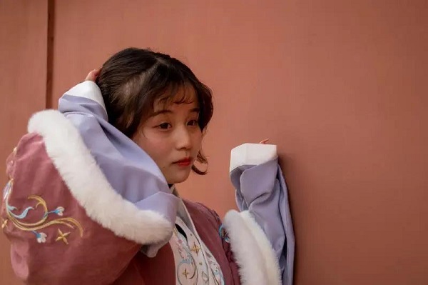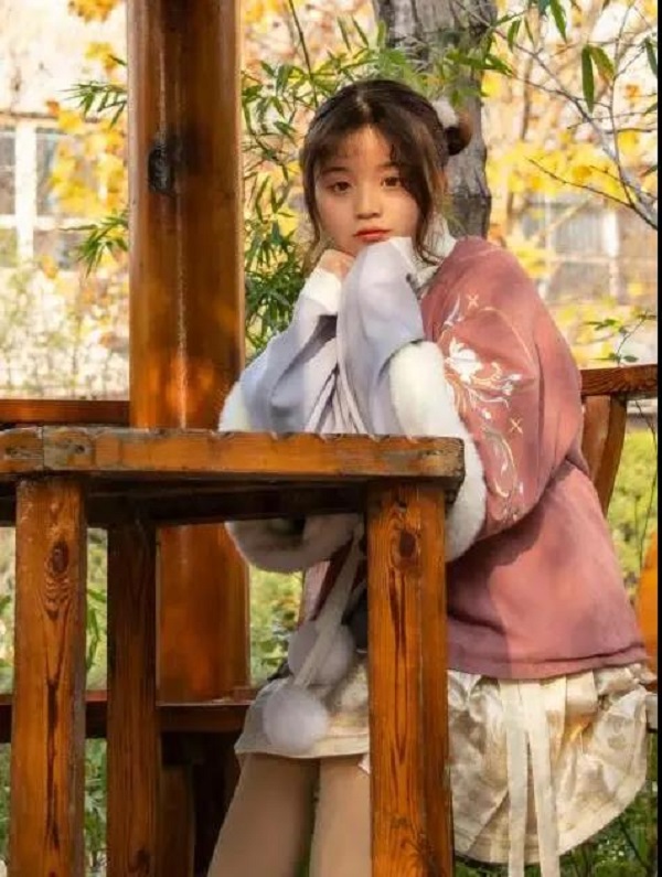 汉服出山,为郑商旅院添了一道靓丽的风景线。上衣是凸显少女感的粉红外套,刺绣工艺更显气质。在阳光下,给校园留下独特的魅力。