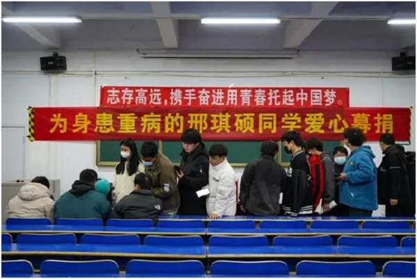 11月22日下午,我校2021级计算机专业邢琪硕同学突发脑动脉瘤出血,11月29日上午进行手术治疗,但巨额的治疗费用,给他的家庭带来了沉重的负担。学校领导了解情况后,立即商量解决之策,向全校师生发布了募捐倡议书,号召全校师生为邢琪硕同学奉献爱心。