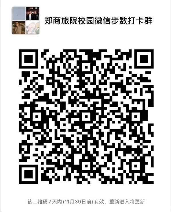 参与活动者扫描下方二维码加入打卡群,每天24:00前将当日微信步数超过八千步的截图(备注班级+姓名+学号+日期)发至群里,由工作人员查收并记录。
