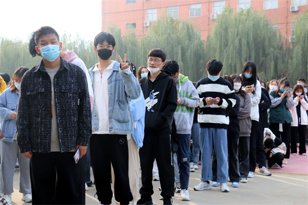 我校高度重视此次工作,提早制定工作方案,提前完成各点位的桌椅、一米线等准备工作。医务人员身着防护服,戴口罩、护目镜和医用一次性手套,严格按照检测规范流程进行登记、信息核对、核酸采样。前来做核酸检测的师生自觉佩戴口罩,在工作人员的耐心引导及帮助下,有序扫码、测温,十人一组,分批进场,工作开展有序高效。
