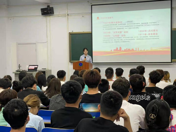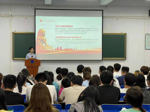 百年征程波澜壮阔,以史鉴今不忘初心。为庆祝中国共产党成立100周年,深入扎实推进党史学习教育,2021年6月 21日,我校党史学习教育专题宣讲在报一教室开展,大学生党史宣讲团成员、经济管理系20级电子商务班陈莹担任主讲,电子商务班学生186人参加。