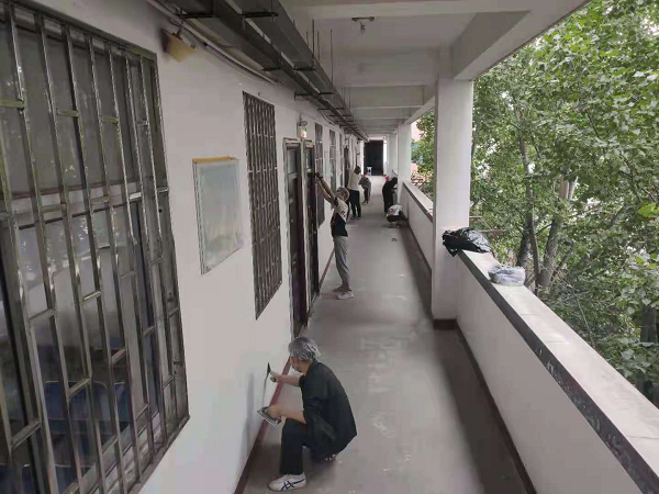 为使粉刷工作保质保量进行,作为本次粉刷工作的主要责任单位,后勤处对粉刷工作制定了详细的工作排期,进行了科学的采购预算,与教务处、学生处一起对教室利用、课程安排、学生管控、施工安防等方面进行了系统的规划,并报校领导通过。施工开始之前,后勤处组织全体人员召开推进会,制定实施方案、细化工作周期、明确楼层负责人;为便于沟通协调,组建了粉刷工作微信群,每日明确目标、通报情况、适时监督;成立粉刷材料考察组,对主材的供货单位进行实地考察,现场查验供货单位的资质、业绩、产品的质检报告、合格证、环保手续等,现场开封检查,随机抽取供货样品。施工开始后,学院后勤处党支部结合本职工作和学校实际情况,组织共产党员积极投入劳动,不怕脏,不怕累,把共产党员的先进性真正付诸实践;学生处、教务处教育引导青年学生树立正确的劳动观,构建学院德智体美劳“五育并举”的教育体系,鼓励学生投入到校园劳动中来,工学结合,截至目前,共有18人次累计完成144学时劳动教育课时。