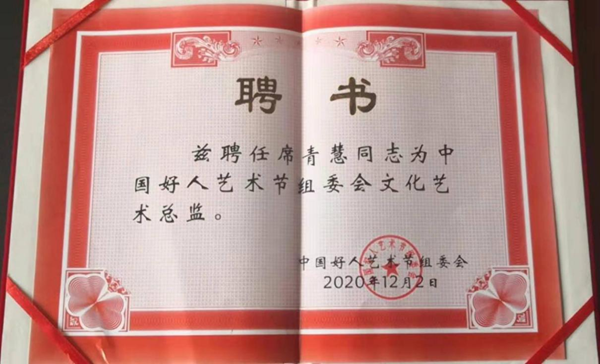 2020年12月10日讯。为了把优良传统发扬光大,提高全民族的精神支柱,以榜样的力量提高全民素质,根据习近平总书记的指示精神,由中央宣传部、文化部、教育部、团中央具体指导,由团中央主办、全国学习雷锋办公室和中国雷锋报社承办的中国好人艺术节组委会正式成立并聘任席院长为中国好人艺术节组委会文化艺术总监职务。