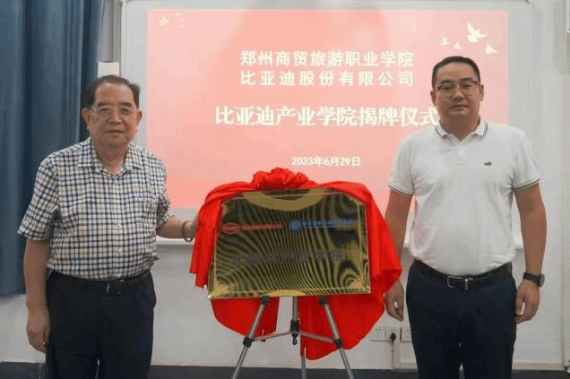 产业学院:我校与比亚迪股份有限公司共建“比亚迪产业学院”,学校建立了与比亚迪产业发展、人才需求相适应的专业设置,为学生提供多元化的课程和教育模式。比亚迪股份有限公司还向我校新能源汽车实训中心捐赠五辆新能源教学用车,用于专业的实训教学,供学生进行实践操作和技能训练。