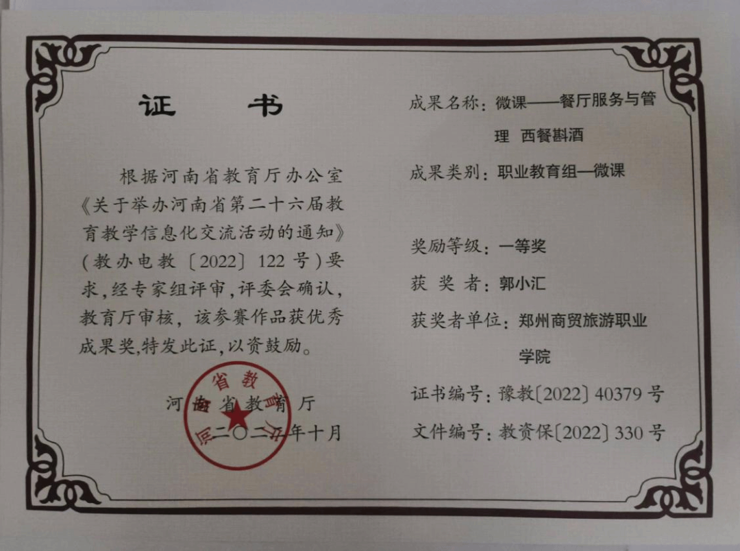 二级教授、高级经营师。享受国务院政府特殊津贴专家、河南省职业教育教学专家、河南省学术技术带头人、河南省学科带头人、河南省优秀管理人才、全国学校德育工作先进个人。中国教育技术协会高职教育专业委员会副主任委员、中国统计教育学会职业教育分会副会长、中宏(河南)产教融合专家咨询委员会首席专家。公开发表论文多篇、主编教材多部、主持完成厅级以上课题20多项。