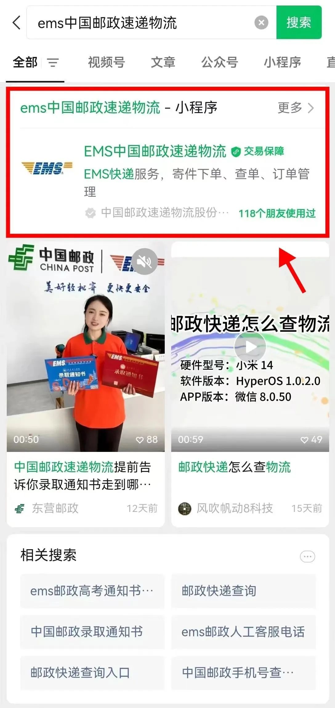 微信搜索“EMS中国邮政速递物流”小程序。