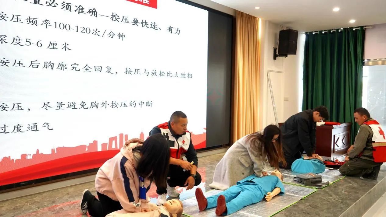 心肺复苏术是此次培训的重点内容之一。蓝天救援队的队员们利用人体模型,详细地为同学们演示了心肺复苏的操作步骤,包括判断意识、呼叫救援、胸外按压、开放气道和人工呼吸等。同学们认真观看,积极参与实际操作,在队员们的耐心指导下,逐渐掌握了心肺复苏的操作要领。