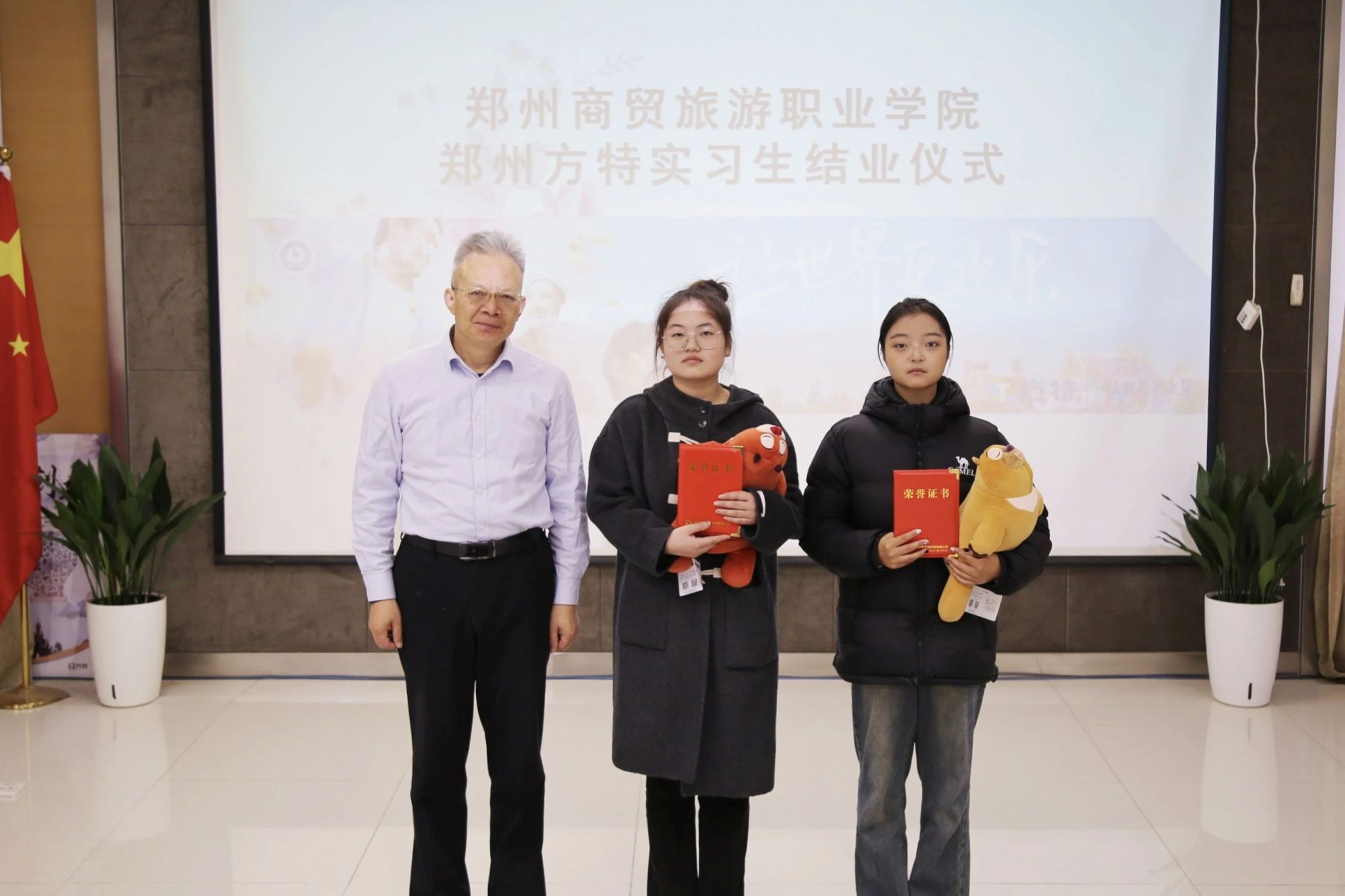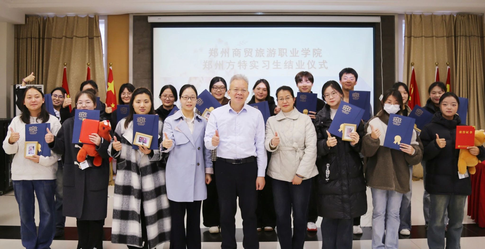 11月18日,郑州方特为我校人文旅游学院部分实习生举行了实习结业仪式。副校长冯鑫永,人文旅游学院副院长郭小汇,方特人力资源中心主任姚真、招聘部部长何颂以及实习生参加了结业仪式。