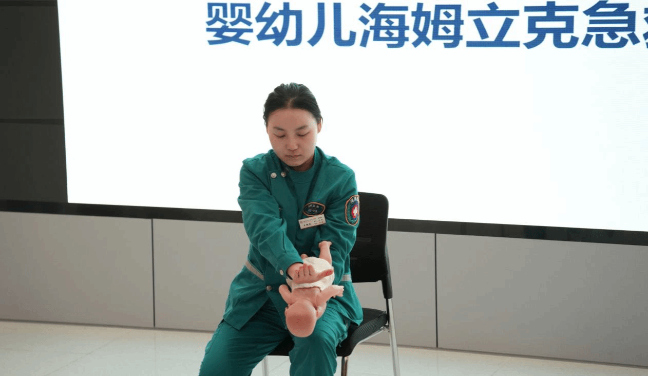 周丽娟护士长担任实操环节的主讲人,她带领其他专家在现场利用模拟人设备和急救器材示范心肺复苏、海姆立克急救法等操作流程,每一个动作都精准到位、流畅自然,赢得了在场师生的好评和掌声。