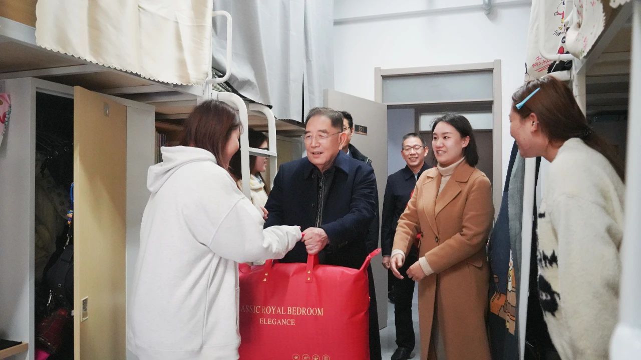 冬日寒风凛,暖阳沁人心。12月18日,我校“情满冬日 爱满商贸”2024 年冬日送温暖活动在校园内温情开展。董事长席青慧、校党委书记张睿、校长郭国侠、副校长康勇等校领导向受助学生送去学校的关怀与温暖。