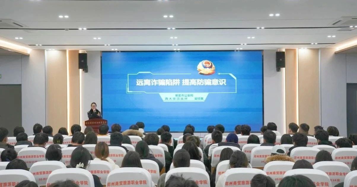 为提高师生的反诈意识,增强防范诈骗的能力,1月2日下午,我校邀请新密市西大街派出所反诈中心资深警官李高洋、翟硕果到新密校区教学楼开展了一场别开生面的反诈知识讲座。副校长康勇出席讲座,学生处、二级学院学生管理副院长、全体辅导员和学生代表参加讲座。