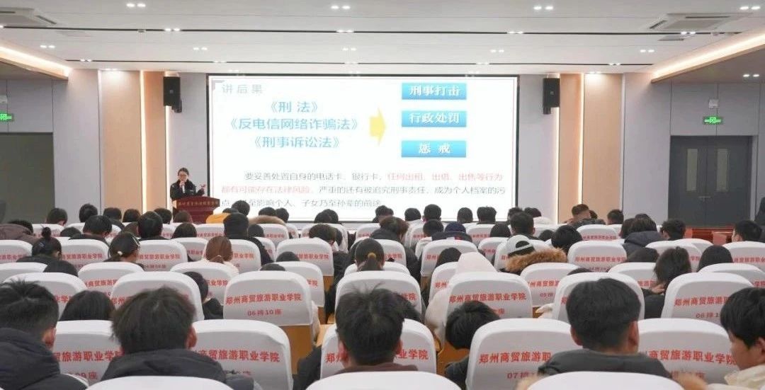 本次讲座由干警翟硕果担任主讲人。翟干警长期从事反诈工作,具有丰富的实践经验和深厚的专业知识。她通过生动的案例、翔实的数据以及深入浅出的讲解方式,向师生们详细介绍了常见的电信诈骗类型,如网络刷单诈骗、网络贷款诈骗、冒充公检法诈骗、冒充熟人诈骗等,并深入剖析了各类诈骗手段的特点和作案手法,让师生们对电信诈骗有了更为直观和清晰的认识。