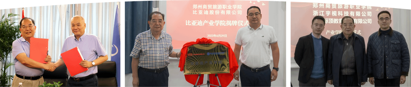 学校积极与比亚迪股份有限公司、河南八六三软件股份有限公司、新华三技术有限公司、量子矩阵(郑州)科技有限公司、浙江宇视科技有限公司、河南省宏安航空科技有限公司、泰宏文森特酒店等知名企业展开深度合作,充分发掘并整合双方的优势资源,以创新的思维探索人才培养模式与办学机制的优化路径。通过与企业的紧密协作,推动高校课程体系的全面改革,进一步强化教师队伍的建设工作,致力于实现产教深度融合、校企协同发展以及共同育人的目标,不断提升学校的教育教学质量与人才培养水平,为行业发展输送高素质的专业人才。