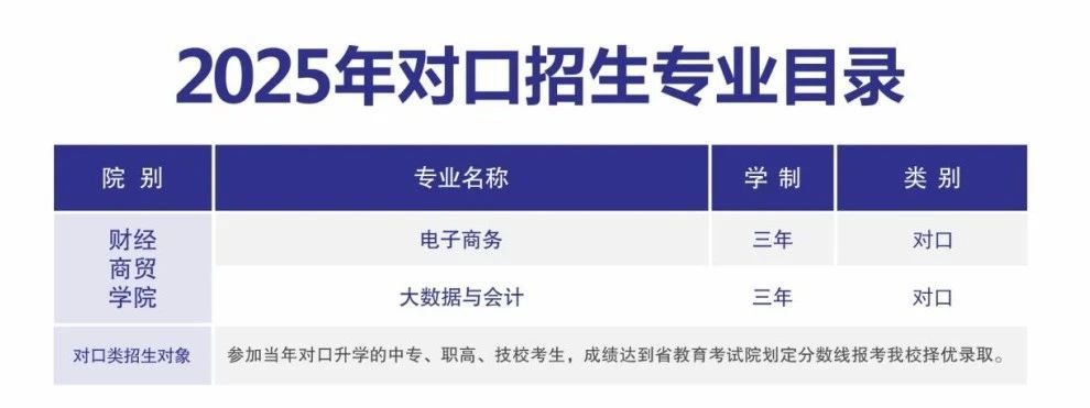 学校以“厚德强能、日新月异”为校训,以商贸旅游、人工智能、数字经济为办学特色,设有财经商贸学院、人文旅游学院、人工智能学院、信息工程学院、汽车工程学院、智能制造学院、继续教育学院、中专部等。学校特色专业有电子商务、智慧旅游技术应用、学前教育、人工智能技术应用、大数据技术、新能源汽车技术、无人机应用技术等。